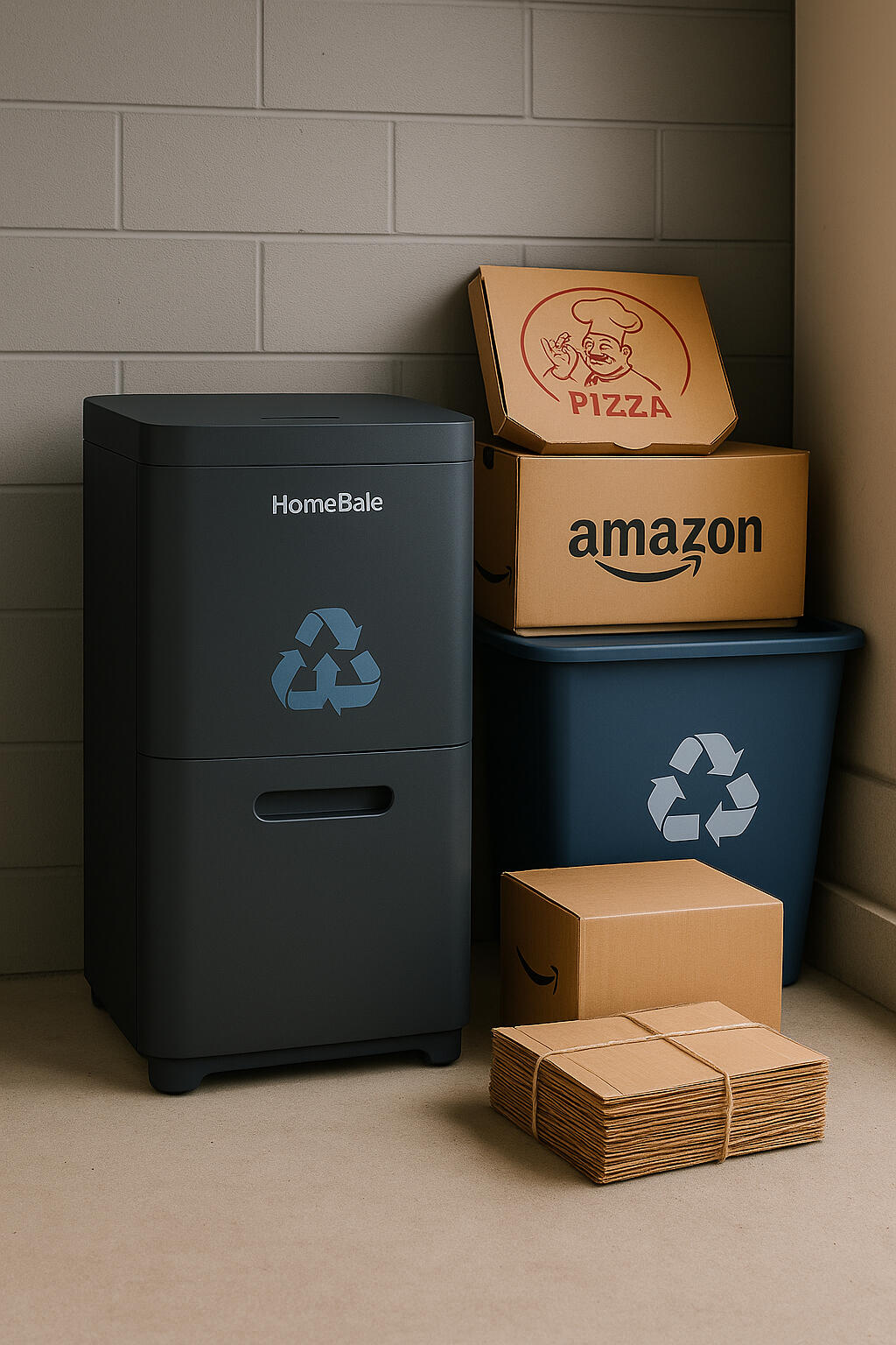 The first compact baler designed for your home. No more overflowing recycling bins.